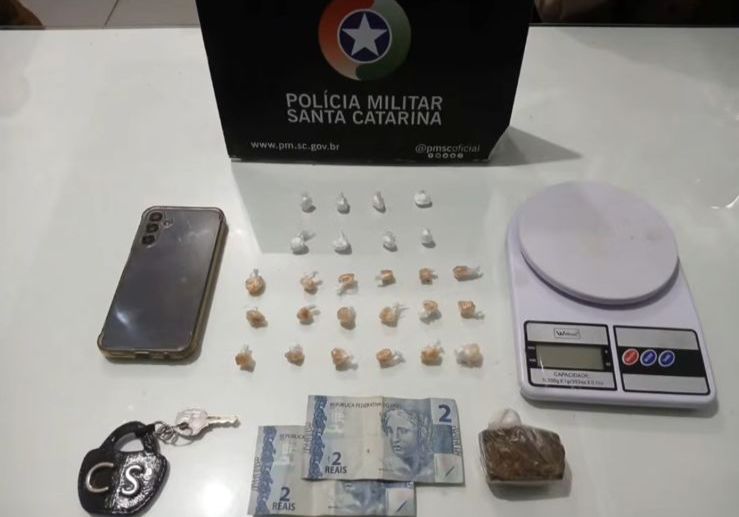 No imóvel, foram localizadas 11 pedras de crack, seis buchas de cocaína, uma porção de maconha e uma balança de precisão, além de documentos pessoais. As drogas já estavam fracionadas e embaladas, prontas para comercialização.